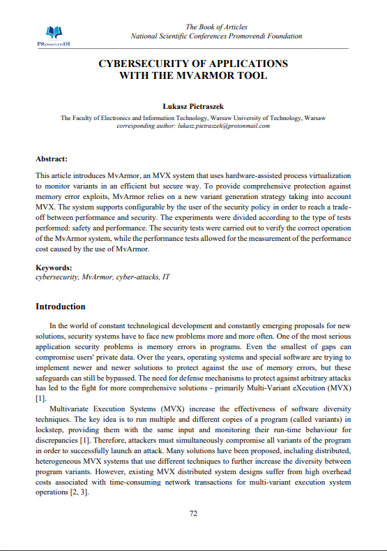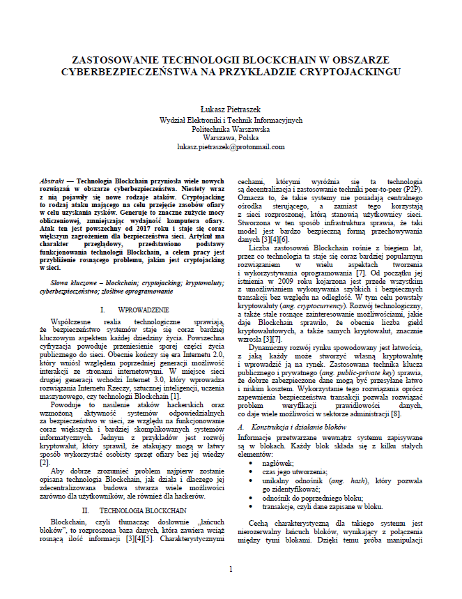 Currently, I am trying to develop myself scientifically by collaborating in research projects. I participate in scientific conferences where I speak about the security of information systems and blockchain technology. As part of my scientific activity, I also publish scientific articles closely related to the subject of IT and cybersecurity.